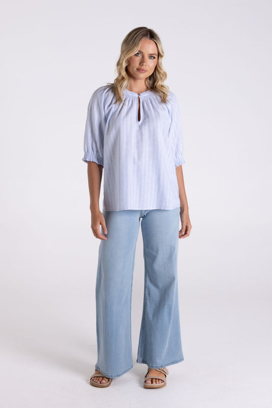 Linen Stripe Top | Ice Blue