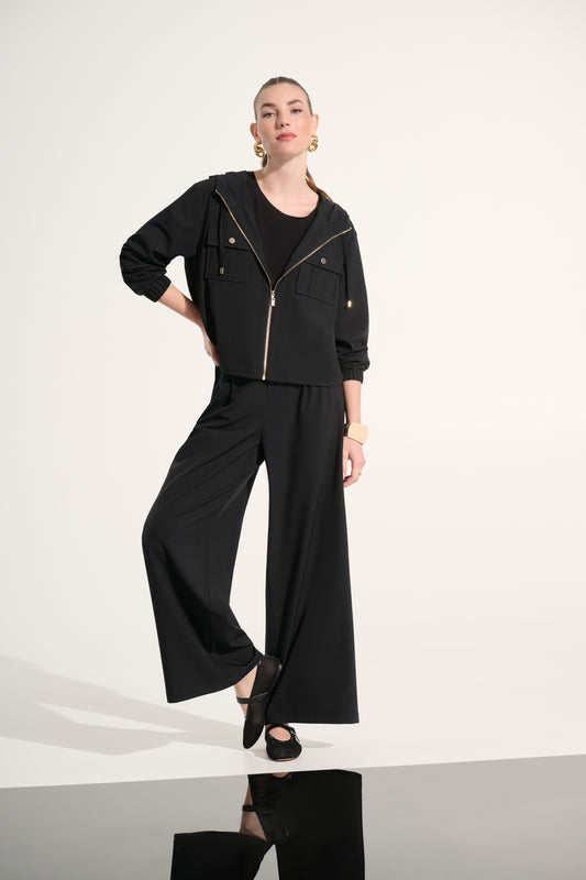 Stretch Woven Hooded Boxy Utility Jacket | Black