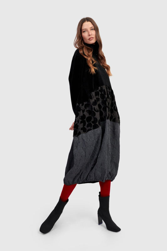Silky Knit Cocoon Dress With Memory Funnel Collar | Black