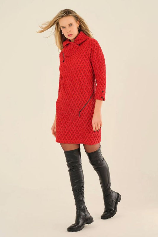 Stretch Taffeta Fit And Flare Dress With Lapel | Paradise Coral