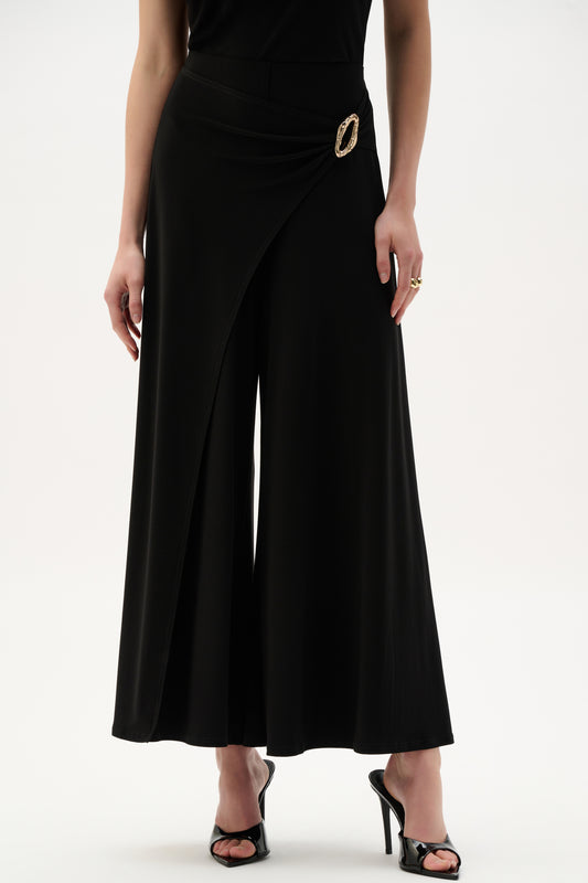 Silky Knit Culotte Pants With Buckle Detail | Black