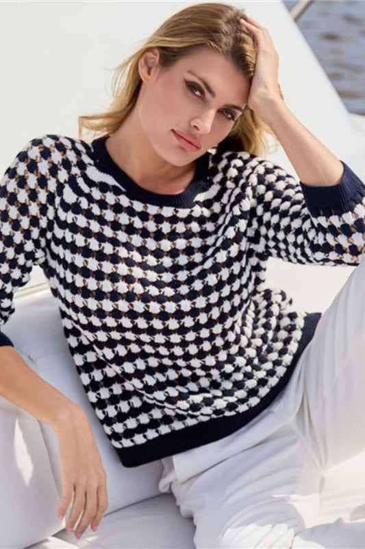 Striped Ajour Sweater | Deep Ocean Stripes