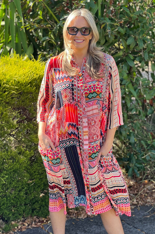 Celeste Button Through Dress | Tequila Sunrise