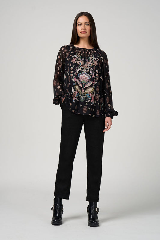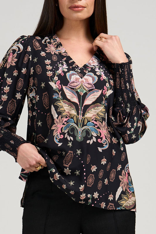 Recycled Woven Silky Knit Top | Beige/Black Animal