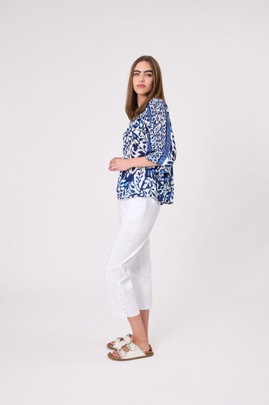 Recycled Woven Geometric Print Boxy Top | Black Multi