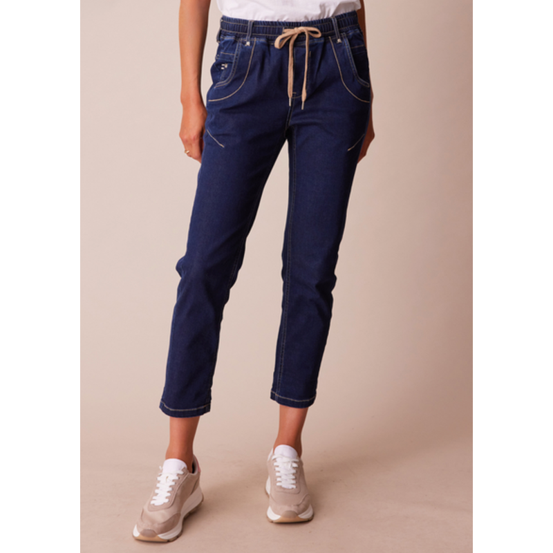 These ultra-comfy Lania Boyfriend Jeans feature an elasticated waist and adjustable drawstring tie for a custom fit. Enjoy the soft handle and finish, crafted with a special garment wash for an incomparable wearing experience. Pull-on pockets for even more convenience.