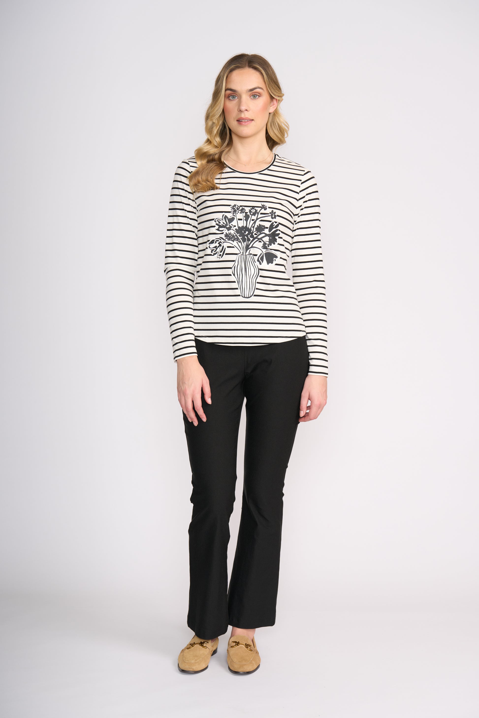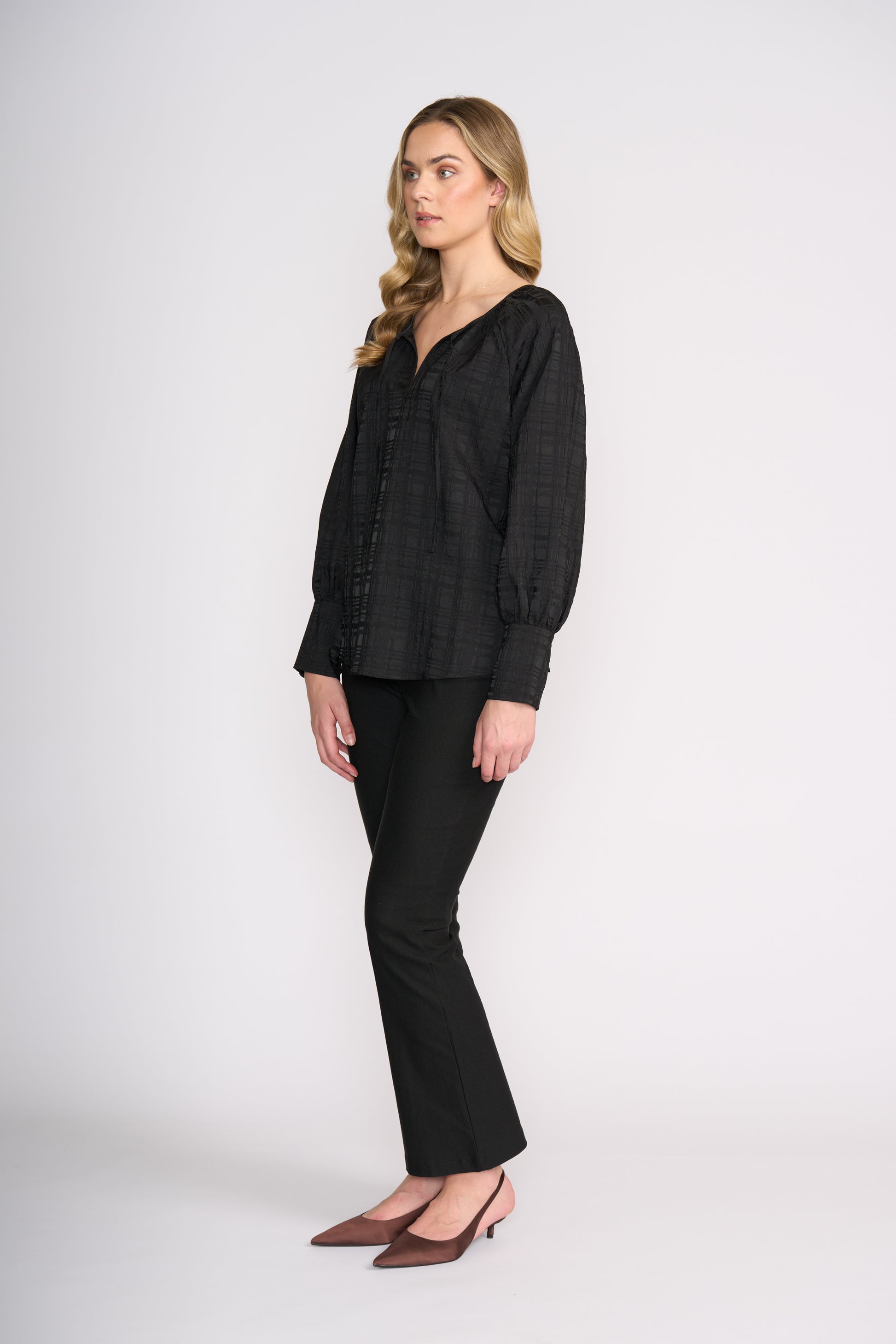 The High Wire Bootcut Trouser | Black brings a sleek, flattering silhouette to your wardrobe with a classic bootcut shape that balances comfort and polish. Designed to sit smoothly through the hip and gently flare from the knee, these trousers elongate the leg and create an elegant line that works from desk to dinner. The refined black hue makes them a versatile staple you’ll reach for season after season.