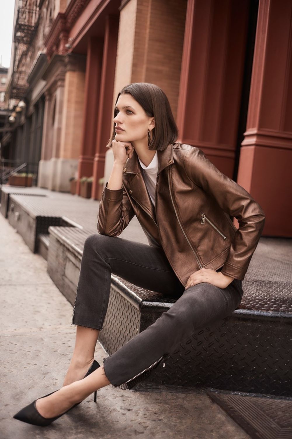 These classic slim denim pants get a glam makeover with rhinestone zippers at the bottom side seams. The perfect pair for a casual night out.